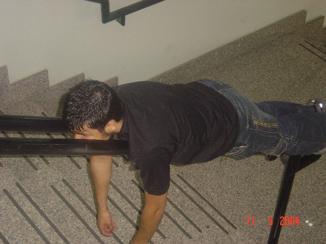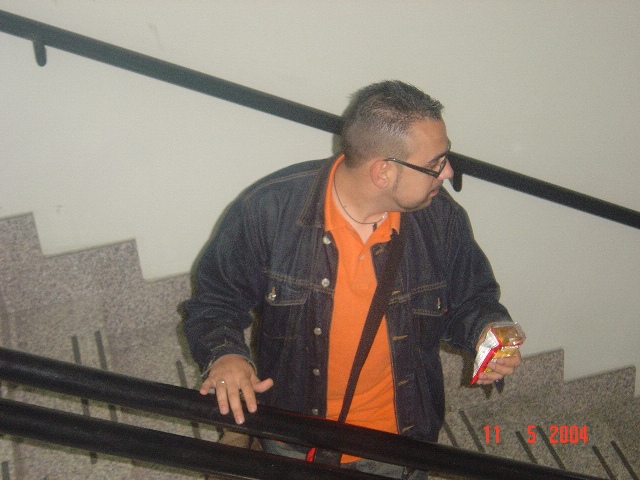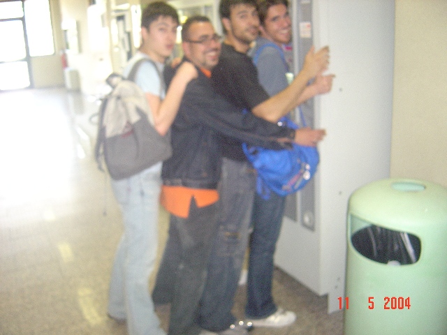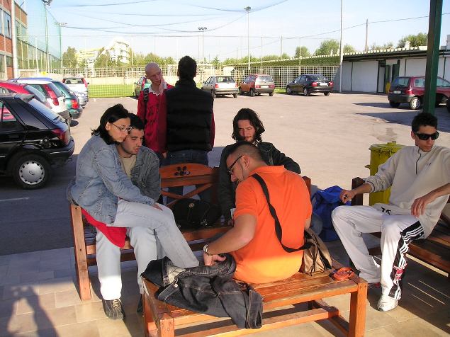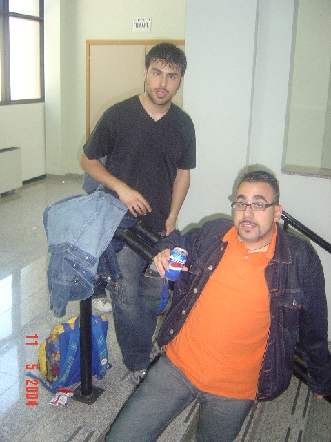 Ore 13.30 - Dopo la lezione di Calcolo Numerico Chilavert mostra tutto il suo impegno in un impegnativo esercizio di stretching degli Zigomi. | Se SuperPippo ha le sue noccioline, Stu ha le Croccantelle Al Bacon. Peccato che l'effetto sortito non sarà lo stesso. | Questa foto fa schifo, ma non potevamo tralasciare una Foto di Stu con la sua fedele compagnia di Vomitate : La Pepsi. | Ore 14,30 - Dopo un'ora di viaggio gustossimo giunge anche Vinc. La Tensione prepartita è ormai palpabile. | Ore 15,15 - L'allegra combriccola esce tra i due palazzi di Informatica per l'appuntamento. In Primo Piano L'orecchio Sinistro di Luigi100 |