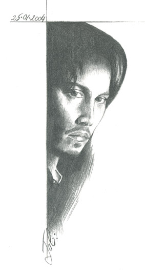 Nel secondo disegno postato da MSK si possono notare le pecche della sua tecnica di cui parlavo con iddqd. Se si guarda il disegno in modo sommario, si nota ke la sua tecnica è piuttosto "grezza" anke se ciò viene cammuffato dall'effetto ke Msk voleva conferire al proprio disegno (a mio parere mossa molto furba). Ma x capire quanto sia bravo MSK bisogna guardare l'occhio destro di Jhonny Deep: notate la profondità, l'espressività dello sguardo! Io una cosa del genere nei miei disegni me la sogno! Inoltre io e MSK abbiamo disegnato lo stessissimo soggetto xkè Jhonny Deep piace ad entramibi (lo posterò prossiamamente) e la differenza di tecnica si nota! Solo ke la cosa più  triste e strana  è ke il mio disegno non somiglia x niente all'attore mentre il suo si. I miei disegni sono privi d'espressione!Uffa!  |